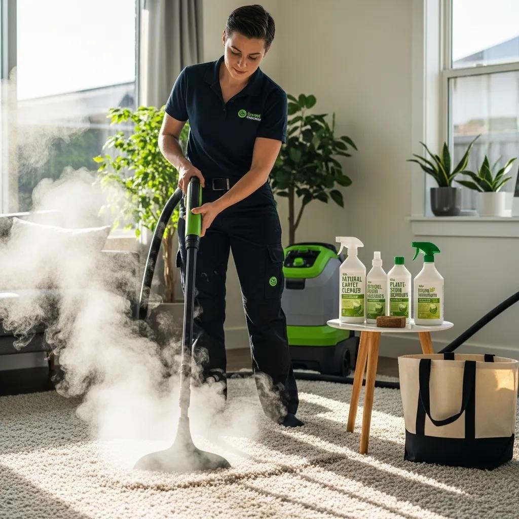 Eco-friendly cleaning uses biodegradable, low-toxicity products that are safer for people and the environment. Steam cleaning (hot water extraction) uses hot water and suction to loosen and remove dirt, allergens and bacteria from deep in fibres, helping to sanitise carpets and improve indoor air quality.