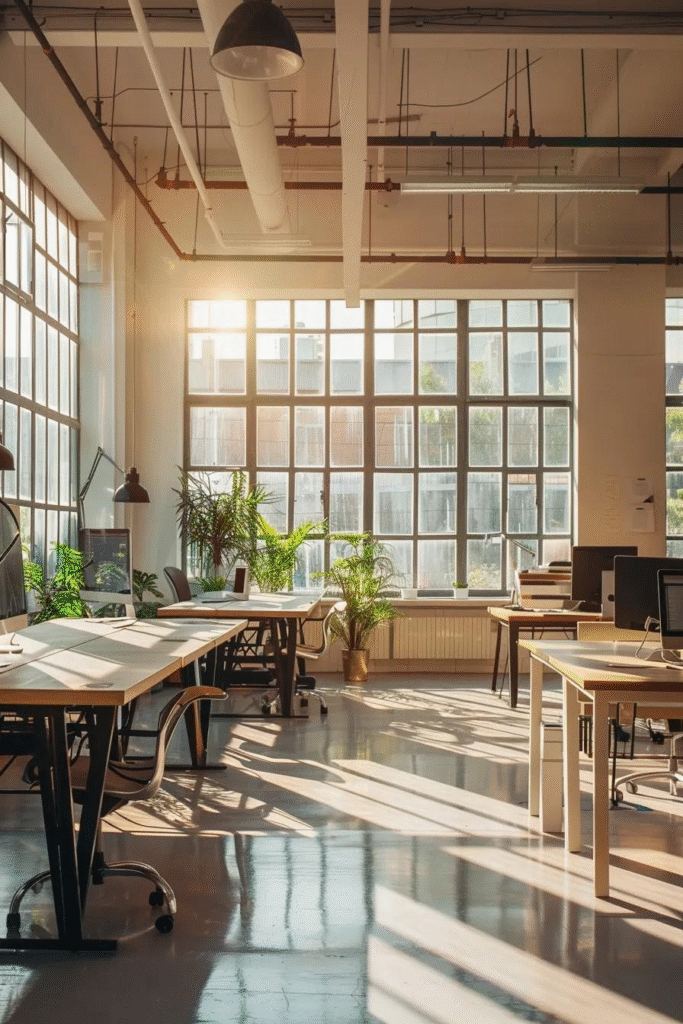 Research has demonstrated that natural light in the workplace can lift employee spirits, lessen eye strain, and boost productivity. Environments filled with natural light are linked to better focus and a reduction in sick days.